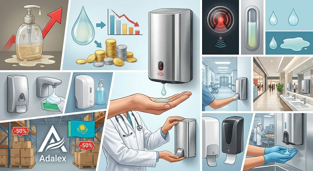 Компания «Adalex», основанная в 2018 году и работающая в Алматы и по всему Казахстану, выстроила ассортимент именно вокруг этой логики — меньше потерь, выше гигиена, стабильное наличие на складе. В каталоге представлено более 25 моделей в наличии, 31 товар со скидкой и десятки вариантов по объему, типу управления и материалу корпуса. Цены на отдельные позиции снижены на 50 %, что делает переход на профессиональные решения финансово оправданным уже в первый квартал эксплуатации.
