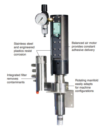 Поршневі насоси LA 300, LA 310 Подавання ПВА, клеїв на основі крохмалю та розчинників Стабільна подача, різні об’єми контейнерів, антикорозійні матеріали