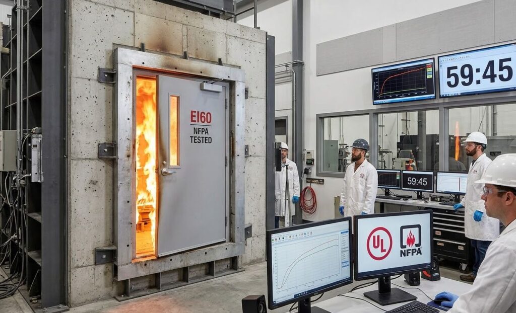 Маркировка EI означает способность конструкции сохранять целостность и теплоизоляцию. Например, дверь класса EI60 выдерживает воздействие пламени и высоких температур не менее 60 минут, не разрушаясь и не пропуская огонь.