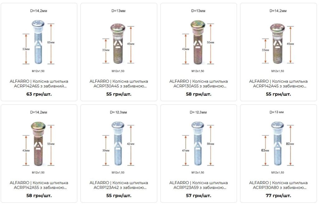 - У магазині доступні шпильки для легкових авто, позашляховиків та комерційного транспорту.