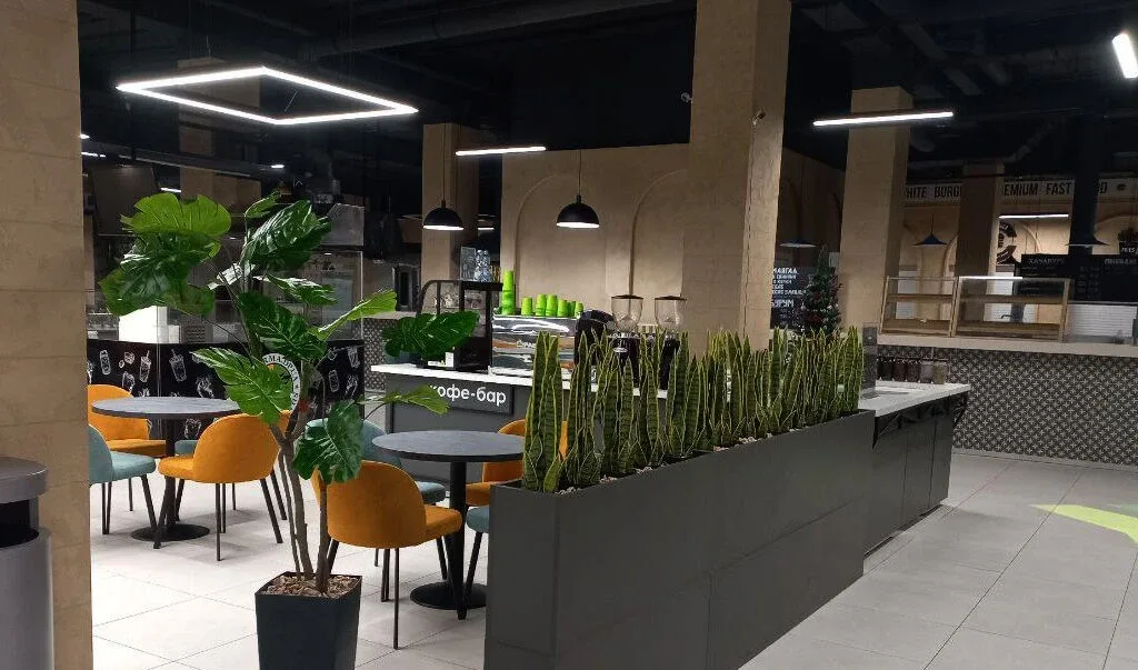 - Сімейне кафе: Наявність дитячої зони, широкі проходи для візочків та м’які меблі.
